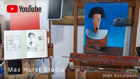 Large surfaces of basic colours are applied straight from the paint tubes and iconography is intentionally raw in referencing popular tacky imitations of child’s drawings that reduce the story characters to stylised conceptual puppets beautifying child rooms of the Western suburbia worldwide. Horst’s motifs are literal puppets and puppet-like figures reduced to pure signs of the visual pun, the cliches of the children’s picture books. But, the references to the candid nature of the child's gaze always clash with dark reality subtly present as the reflection of the other side of the implied omnipresent mirror. In Max’s poetics, the visual baby-talk shifts into the pure sign of disturbing experiences – the haunting child’s nightmare, far from idyllic kitsch representations of childhood. It is a poetics of Disney with a shift: a visual subversion of the kitschy liberal ideal of innocence and exquisite ironic framing of actuality, the witty comment on the living experience of suburbia and suburbian childhood nightmares (Copcic T.)